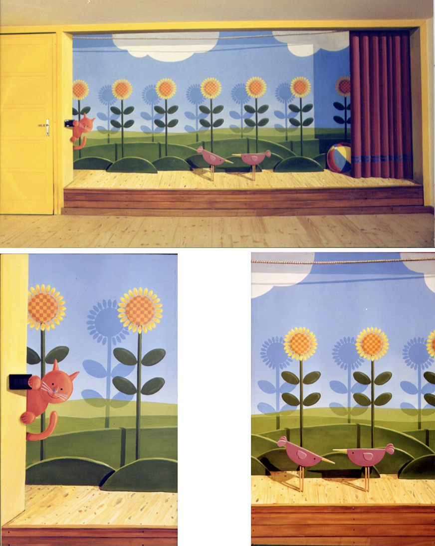 Progetto di decorazioni murali per locali pubblici e abitazioni private in Palmanova (Ud), Carlino (Ud), Lignano (Ud), Bibione (Ve), San v Vito al Tagliamento (Pn),Gradisca d'Isonzo (Go), Joannis (Ud), Tricesimo (Ud), San Giorgio di Nogaro (Ud),FiumeVeneto (Pn), Grado (Go), Cordenons (Pn),Vicenza, Parma, Udine,Cormons (Go), Reana del Rojale (Ud), Codroipo (Ud),Gonars (Ud),Gorizia, Monfalcone (Go), Trieste, Castions di Strada (Ud)